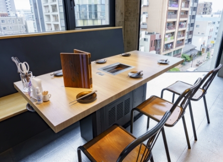 テーブル席では、各席離れておりゆっくりとした時間を楽しんでいただけます。各テーブル席ガラス張りになっており、外の景色もお楽しみいただけます。